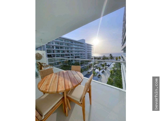 Hermoso apto frente al mar de dos alcobas con dos baños , totalmente amoblado . Con piscina ,jacuzzy, gym y salida directa al mar .